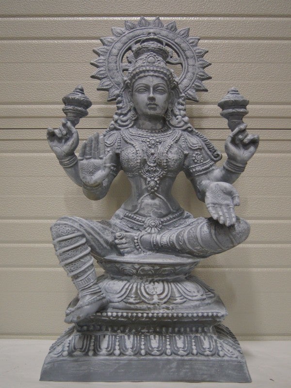 DB113 Curiosa laxmi boeddha 4 armen steen antiek op Sokel polyester résine 80 cm