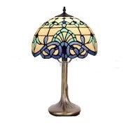 S003B-12 Tiffany tafel lamp wit blauw Victorian design bronzen voet 30 x 50 cm