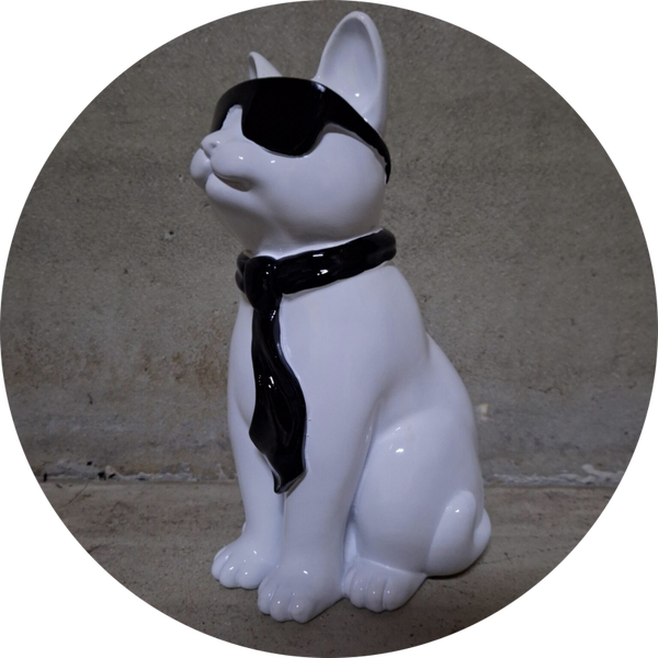 Kat zit met bril en das polyester résine 60 cm