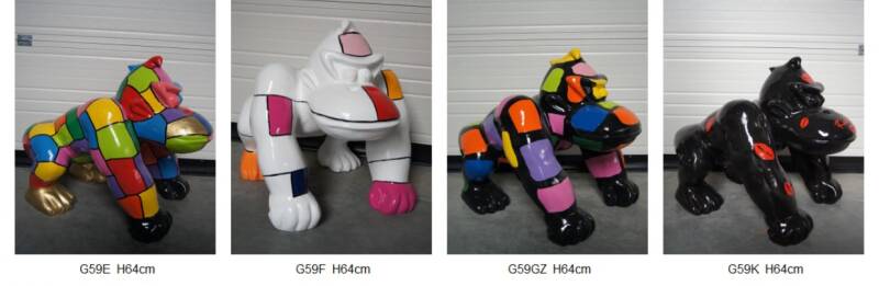 DG53 Jungle Gorilla apen op 4 poten kleur polyester résine 40 cm