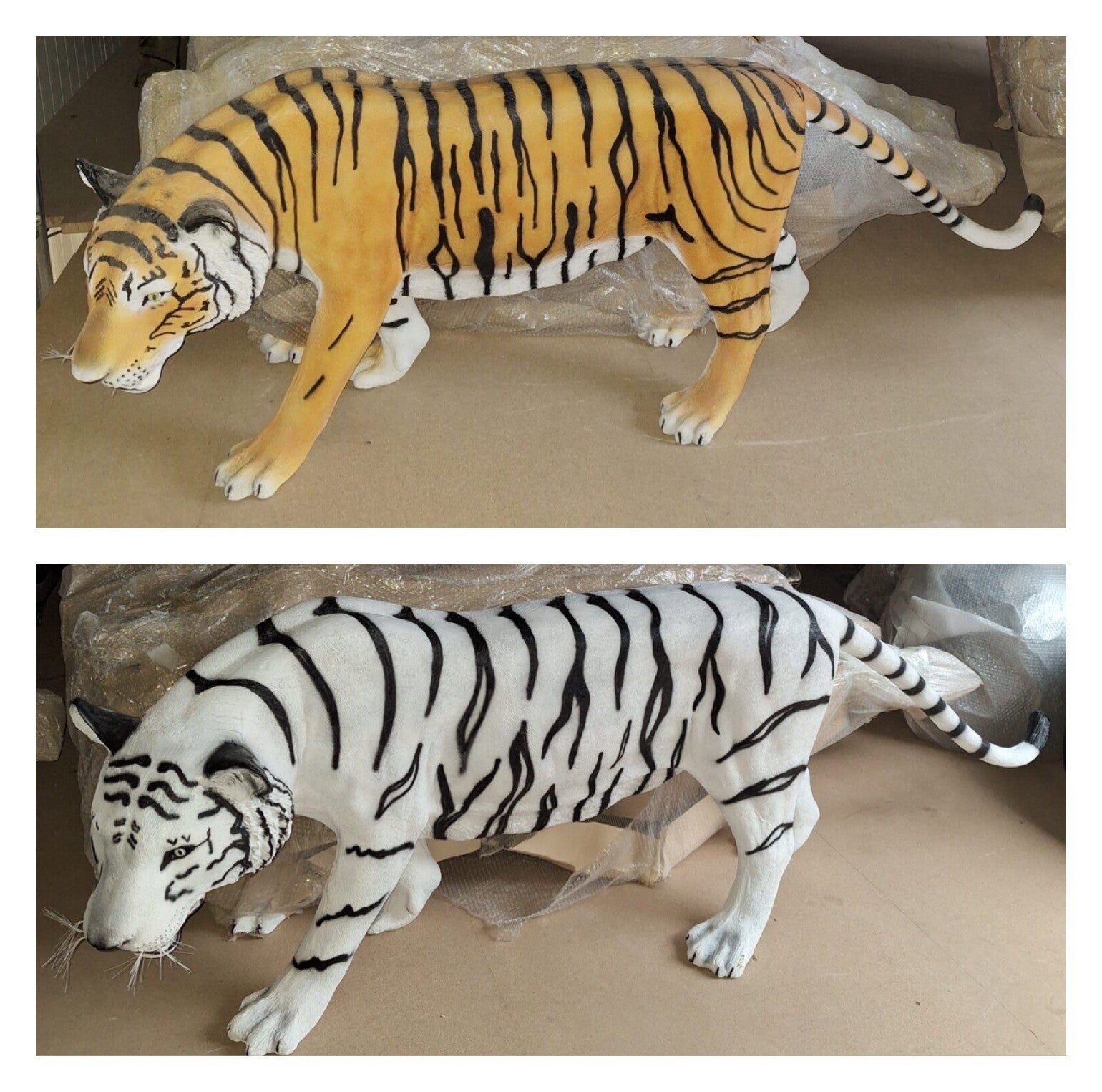 Jungle Tijger lopend wit of geel polyester résine 240 x 90 cm