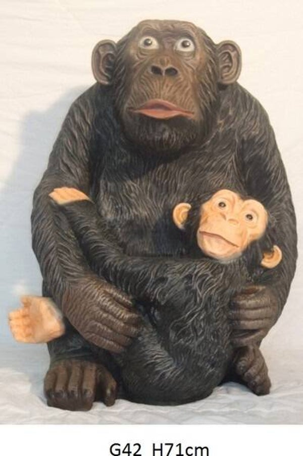 Statue Jungle G42 Le singe des gorilles est assis avec un bébé résine de polyester 85 cm