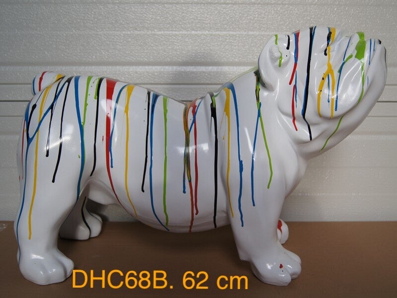 Statue chien bulldog anglais blanc multicolore goutte 30 x 60 cm
