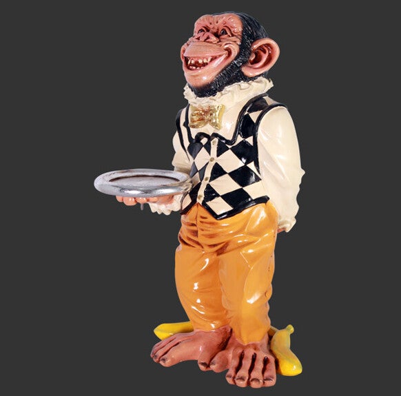 Statue sculpture Serveur Horeca Monkey avec assiette 80 cm