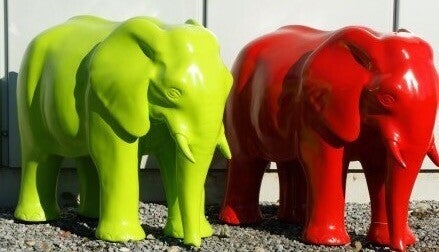 J16 jungle Olifant rood groen wit zwart polyester résine 80 cm