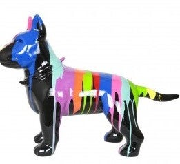 Statue sculpture Chien bull terrier polyester résine multicolor noir  60 cm
