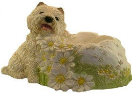 DHB94 Cezar west Highland white terrier hond bij pot polyester résine 35 cm