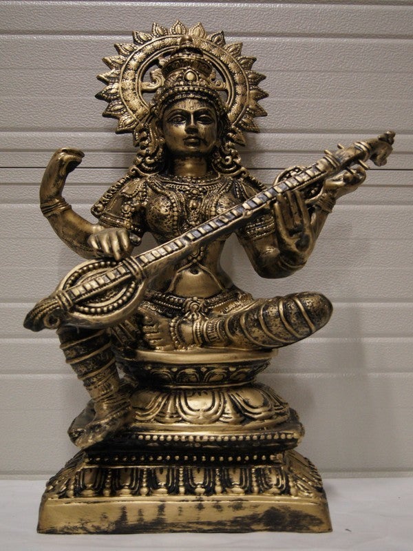 Statue Sarasvati (déesse) avec résine polyester banjo 83 CM