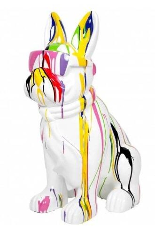 Statue sculpture  chien France Bulldog porte des lunettes et une cravate de 80 cm de polyester noir ou blanc