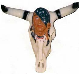 N215A Funny koe schedel met Indiaan polyester résine 50 cm