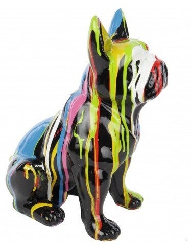 Statue Bulldog chien France est multicolore noir ou blanc goutte de 35 cm