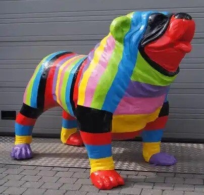 Statue sculpture Chien bulldog anglais en résine polyester Stripe multicolore 180: cm