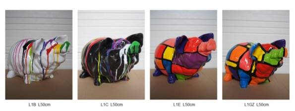 Statue Tirelire cochon polyester résine multicolore 50 cm