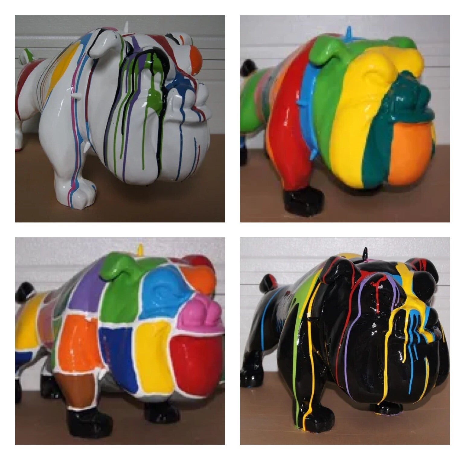Statue sculpture Chien bandit bulldog anglais en résine polyester multicolore 35x70 cm
