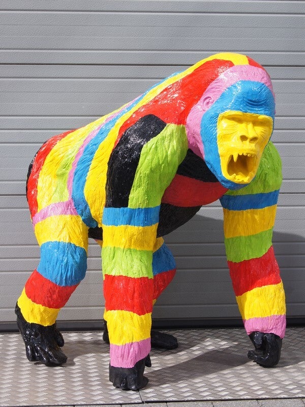 Statue singe gorille agresive résine de polyester multicolore 130 x 100 cm