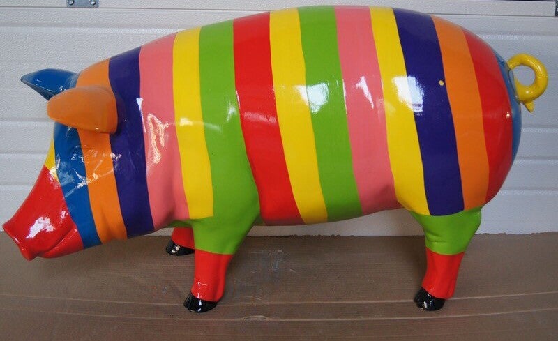 Statue sculpture Cochon  multicolore en résine 60 x 100 cm