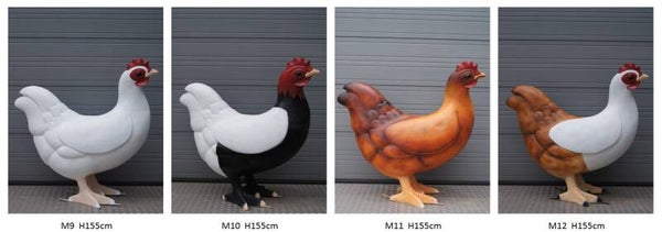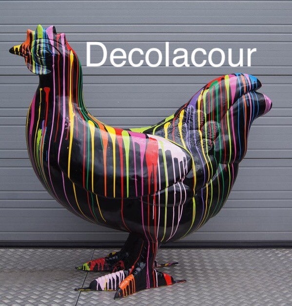 Statue sculpture Poulet résine polyester blanche et noir multicolore  166 cm