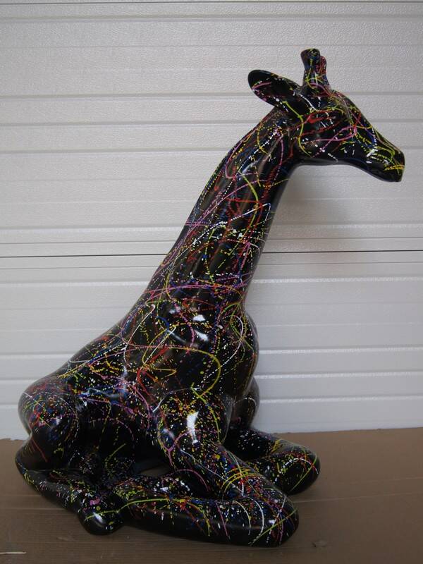Statue sculpture Jungle Giraffe multicolor résine de polyester en résine noire de 90 cm