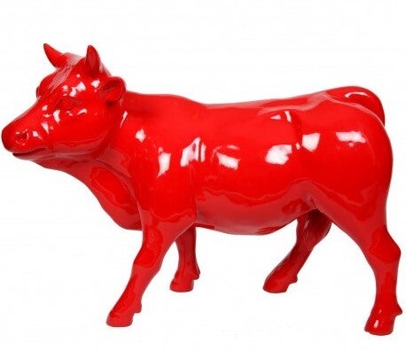 statue sculpture vache ou taureau rouge en polyester résine 70 x 95 cm