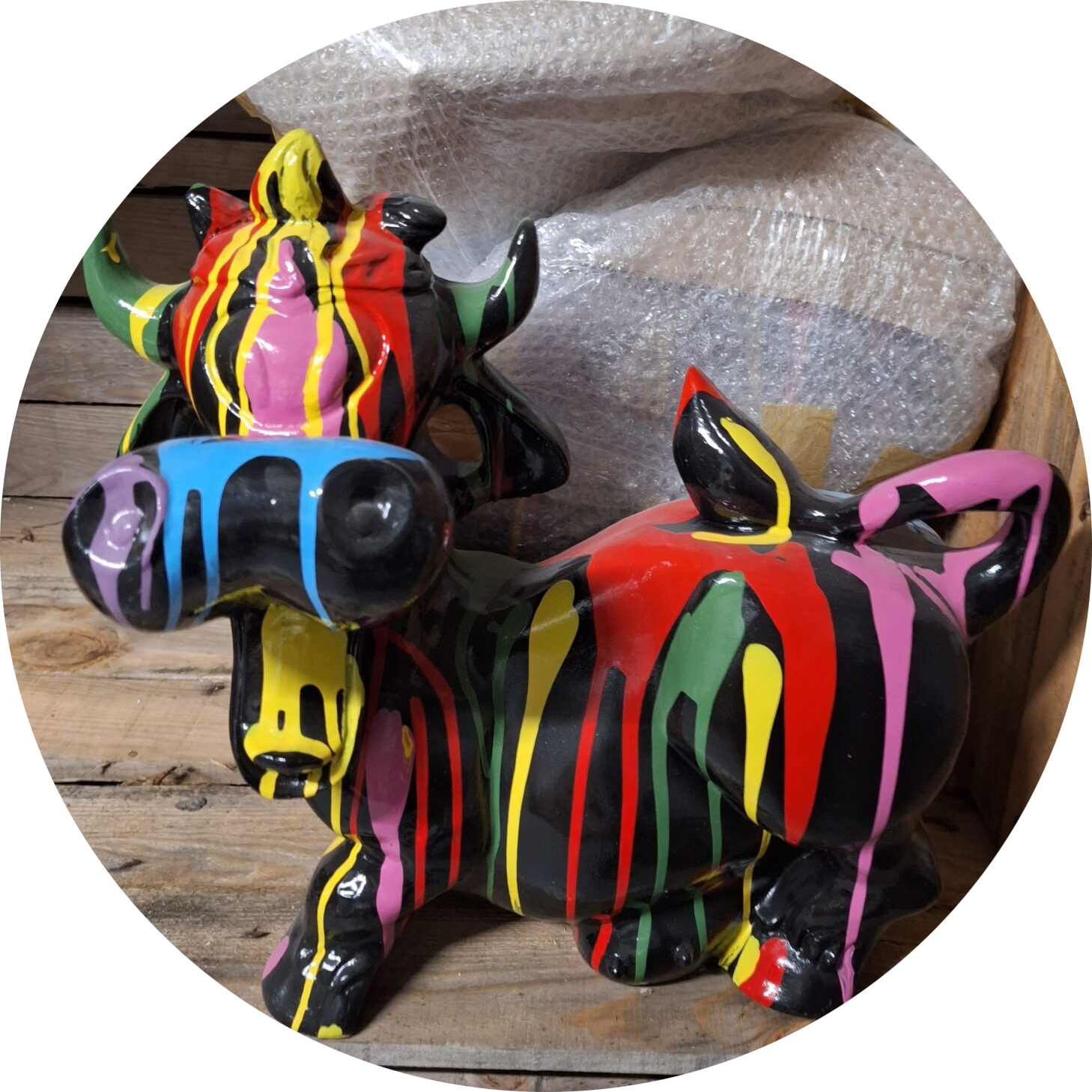 Az125 Funny lachende koe zwart multicolor streep 50 cm