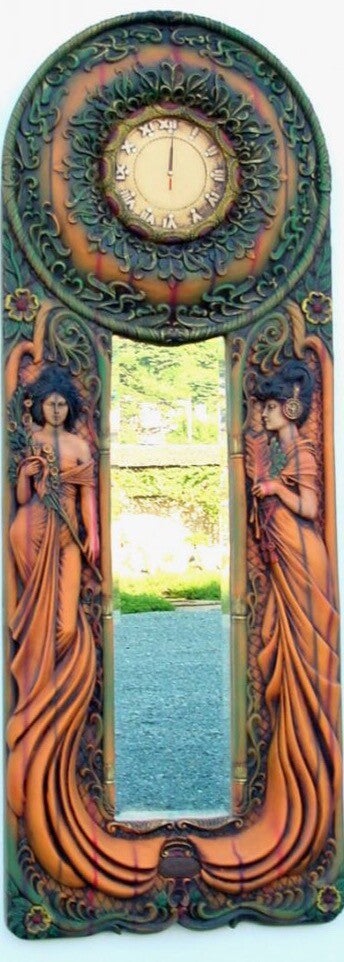 Statue Horloge de curiosité avec 2 dames et miroir 200 x 80 cm