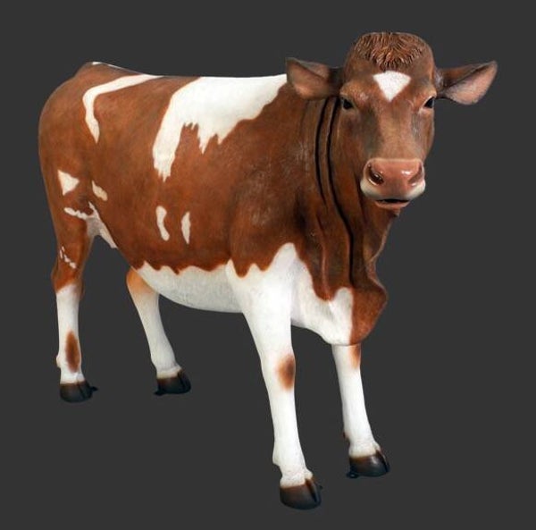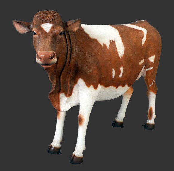 DHD K1 koe levensgroot bruin wit gevlekt polyester résine 160 x 225 cm