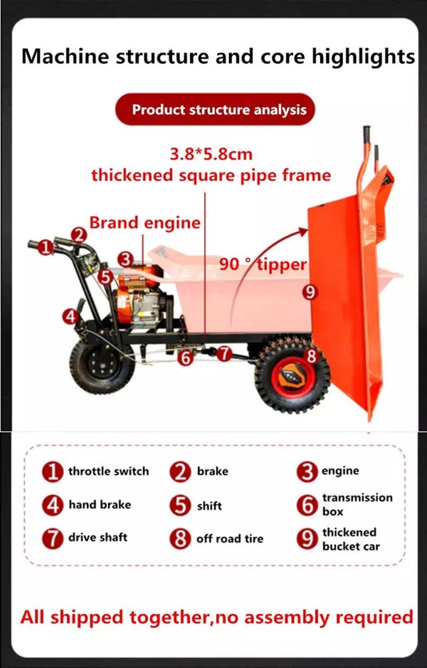 173 Diesel Sterke dumper kruiwagen kardan aandrijving 1000kg draagvermogen met 3 wiel rem